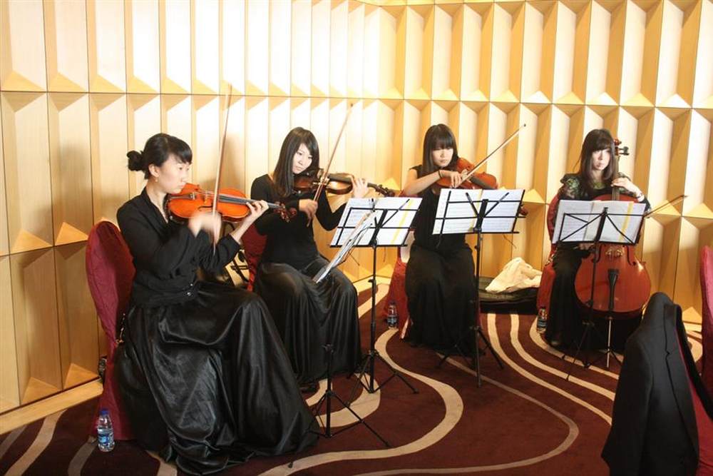 在发布会门口有一组四重奏女孩,几个人配合不错,而且水准也不错,尤其是那个Bass5/18