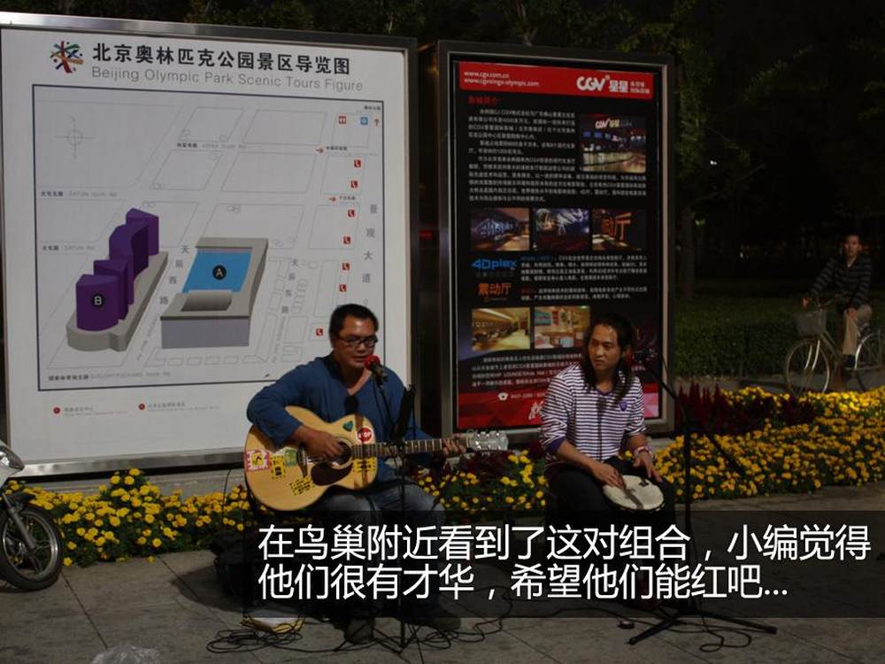 在鸟巢附近看到了这对组合,也会弹吉他的小编觉得他们很有才华,不禁将他们拍下,希望他们会红吧...21/24