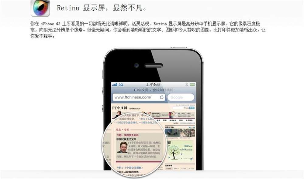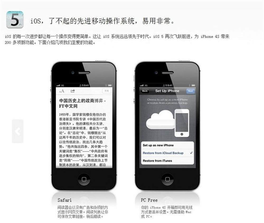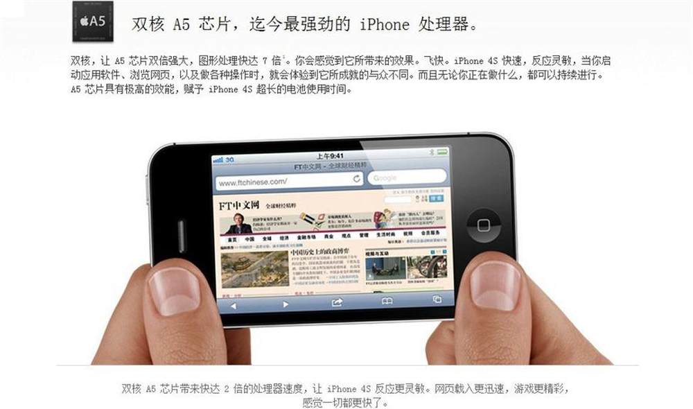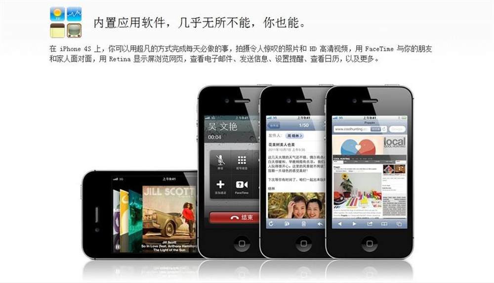 iPhone4S搭载有全新的A5双核处理器,并且配备了一个全新的800W像素摄像头,以及在电池、上网速度上也有所改进。4/23