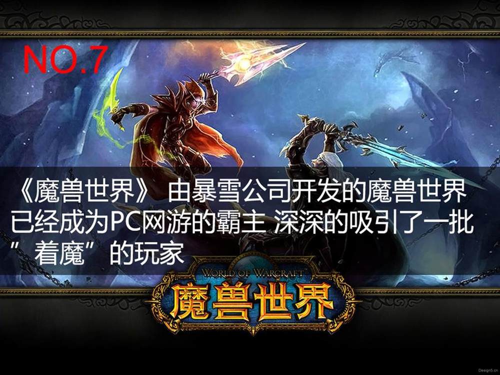 暴雪公司制作的《魔兽世界》曾让很多玩家废寝忘食,但就是这款游戏,却改变了整个网游界。首先,本作率先采用订阅游戏模式;其次通过不断的游戏更新,让玩家都能随时看见游戏的新鲜度;最后,游戏的团队战斗大于单人游玩成分,以至于后来很多新推出的网游都极力的模仿该作,但结果就是模仿始终与原作有着很大的差距。