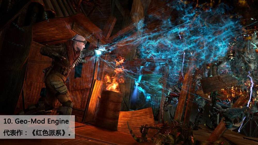 要说这引擎最强的地方的话,比起很多引擎的无序破坏系统,这个引擎可以按照真实世界规则对物体进行逐步破坏,因此而产生的各种互动让人看起来更加可靠。在许多人工智能的场景使用这种效果,并且按照“玩家主动发起”作为原始条件发出点来进行破坏模拟,并且在广阔的世界里帧数还是很不错,这些都是让人印象很深的地方。另外,这些特性在联网的时候一样反应迅速。我们并没有把其他一些“玩小聪明”来制作毁坏效果的引擎列进来,因为Geo在毁坏方面独树一帜,自成一体。