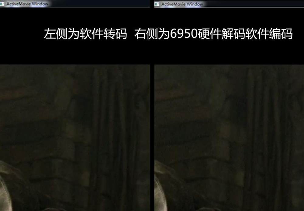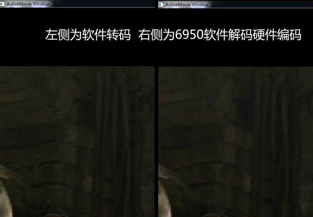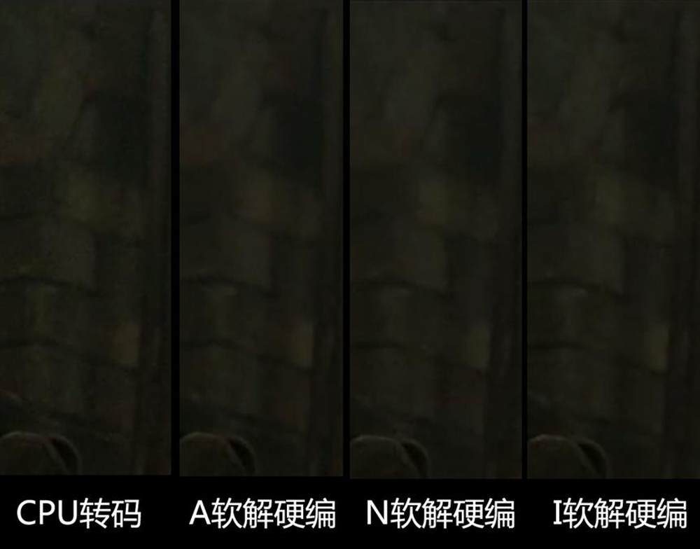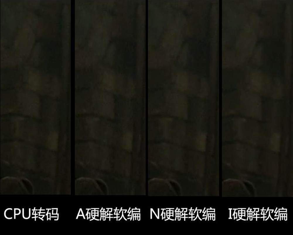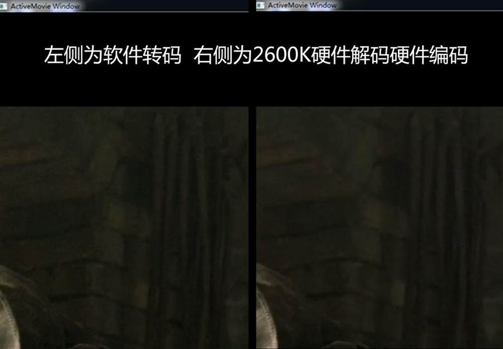 硬件转换后的画面细节与CPU软件转码的细节对比。