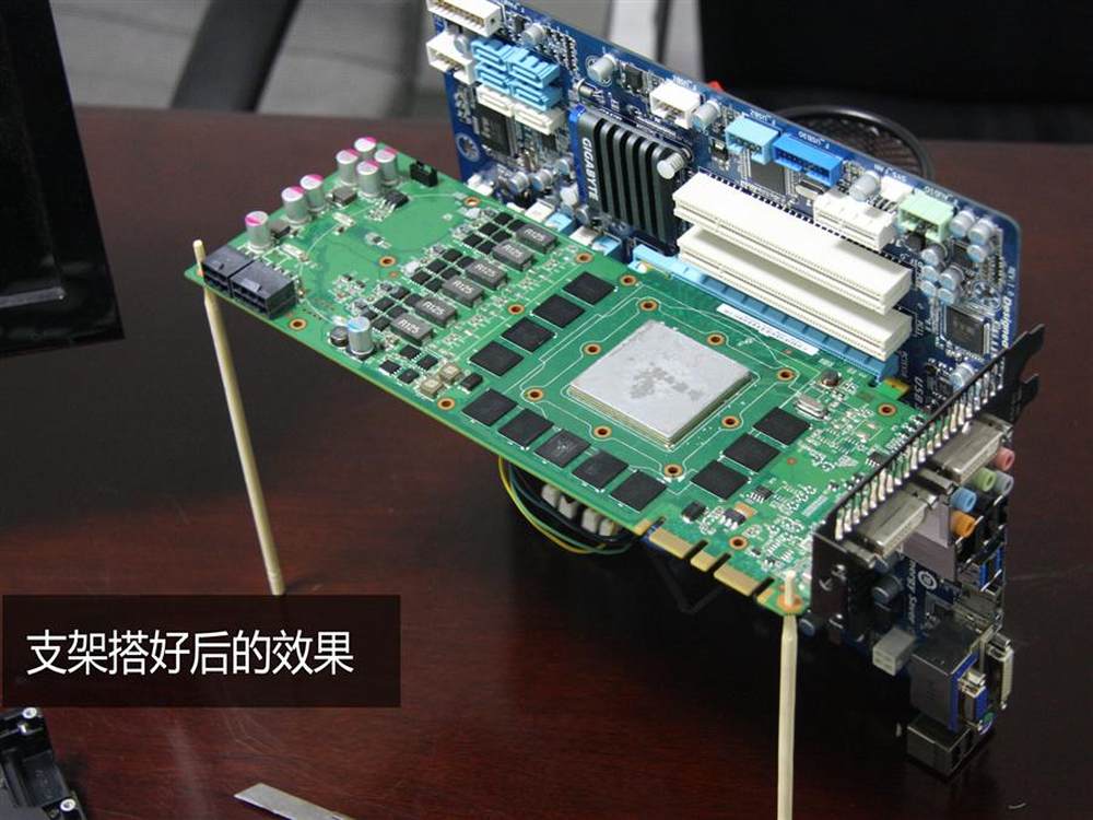 要让显卡保持水平放置,必须用到小编特制的支架。虽然是双筷子,不许笑话小编不专业。4/15