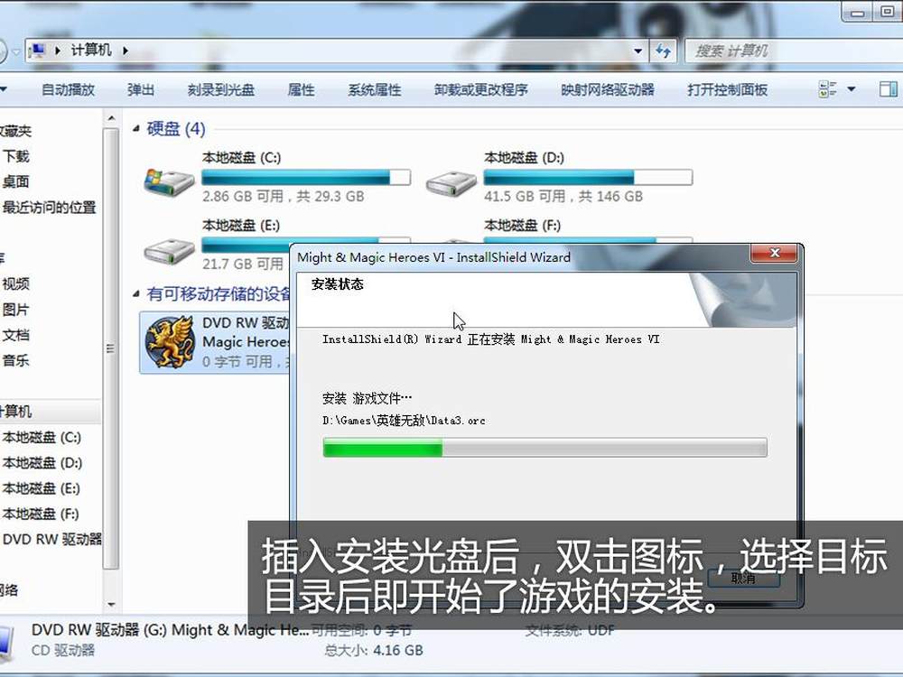 安装游戏是十分方便的,跟普通的游戏安装没什么两样。选择光驱,双击图标,选择目标目录后即开始了游戏的安装。8/26