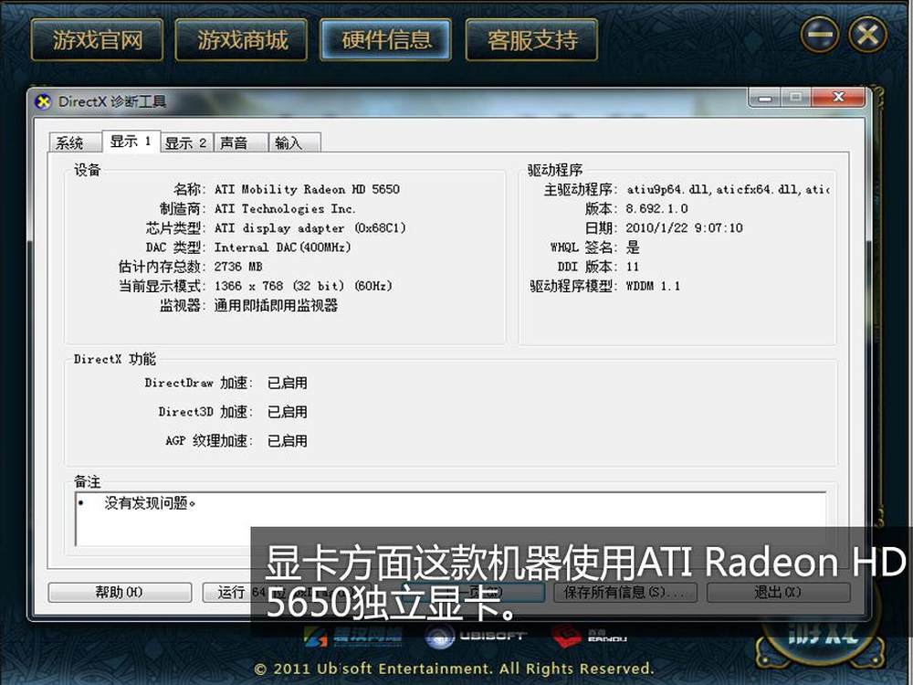 显卡方面这款机器使用的是ATI 5650独立显卡。10/26