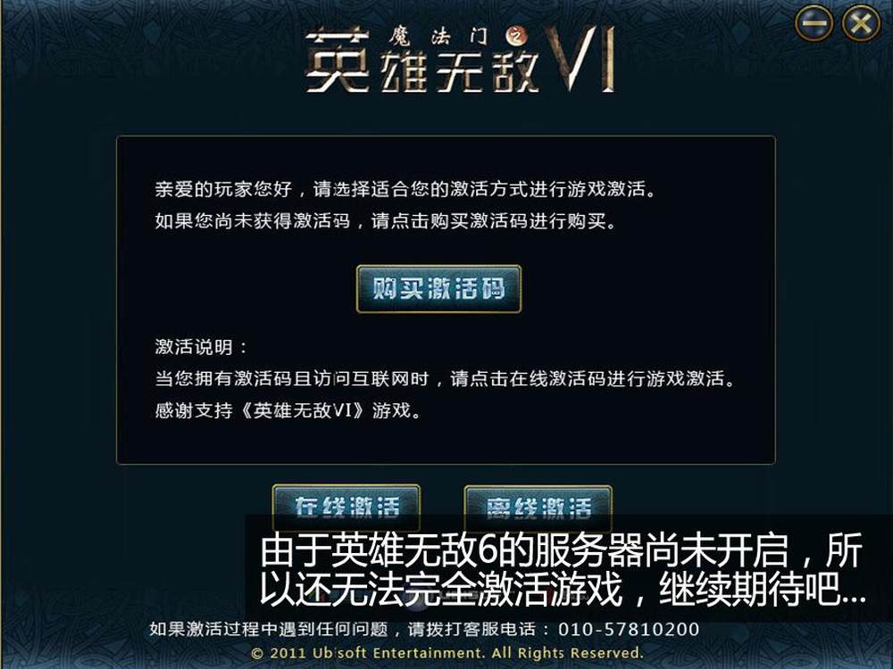 由于英雄无敌6的服务器尚未开启,所以还无法完全激活游戏,继续期待吧...12/26