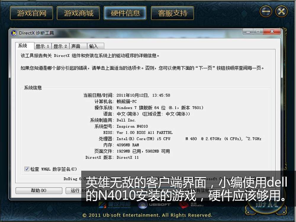 英雄无敌6的客户端界面,小编使用dell的N4010安装的游戏,硬件配置应该够用。9/26