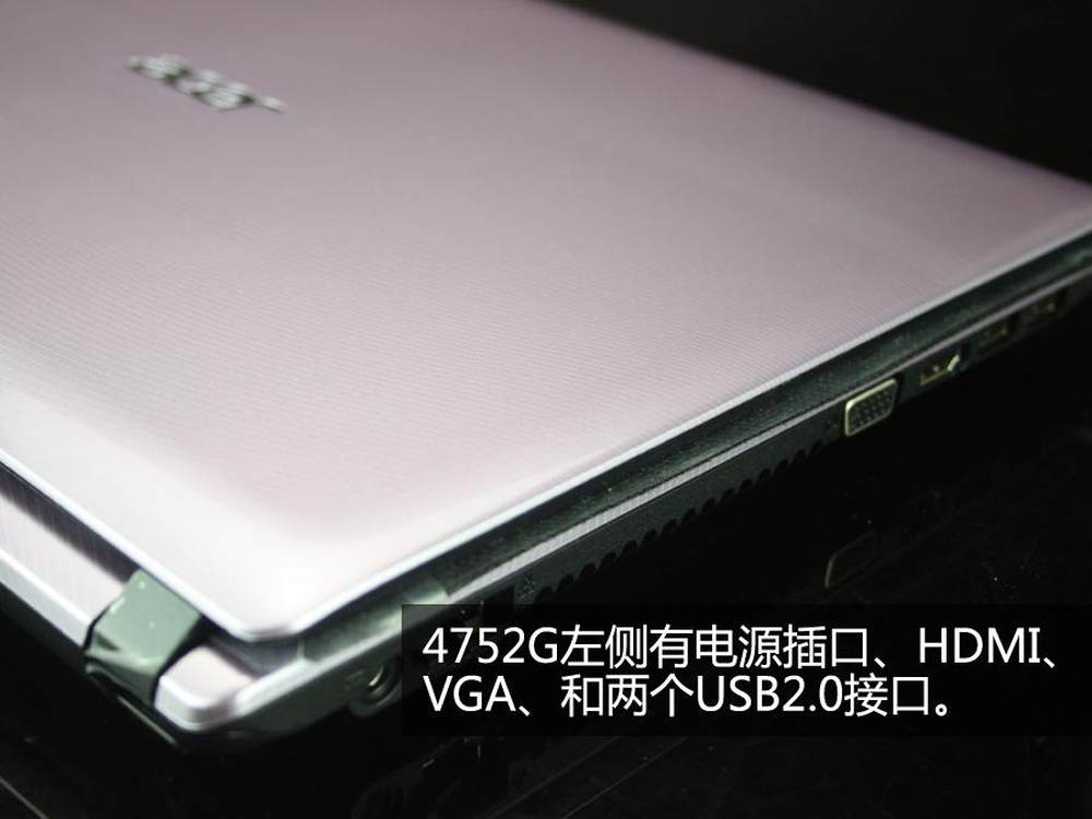 4752G左侧有电源插口、HDMI、VGA、和两个USB2.0接口。17/27