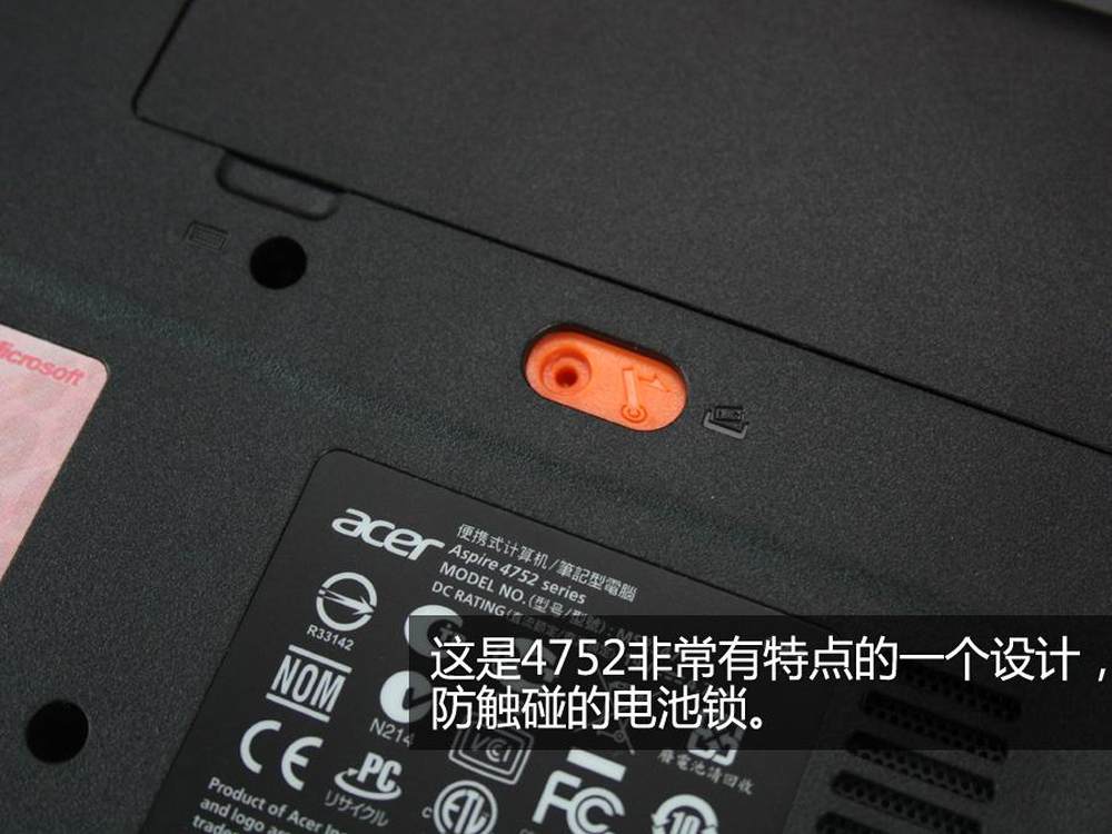 4752G非常有特点的一个设计,这是防触碰的电池锁。