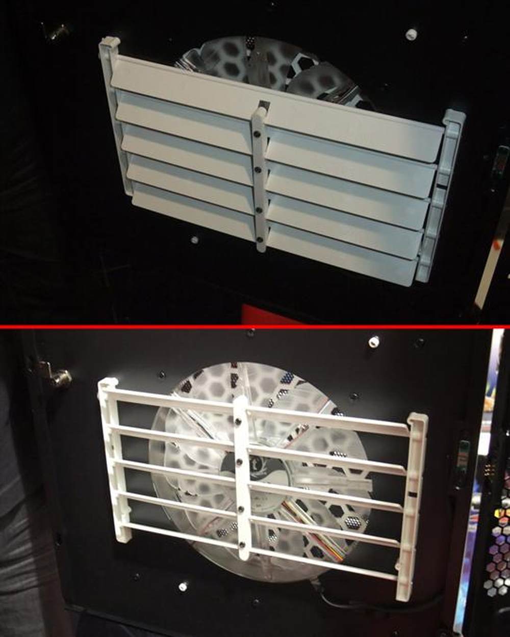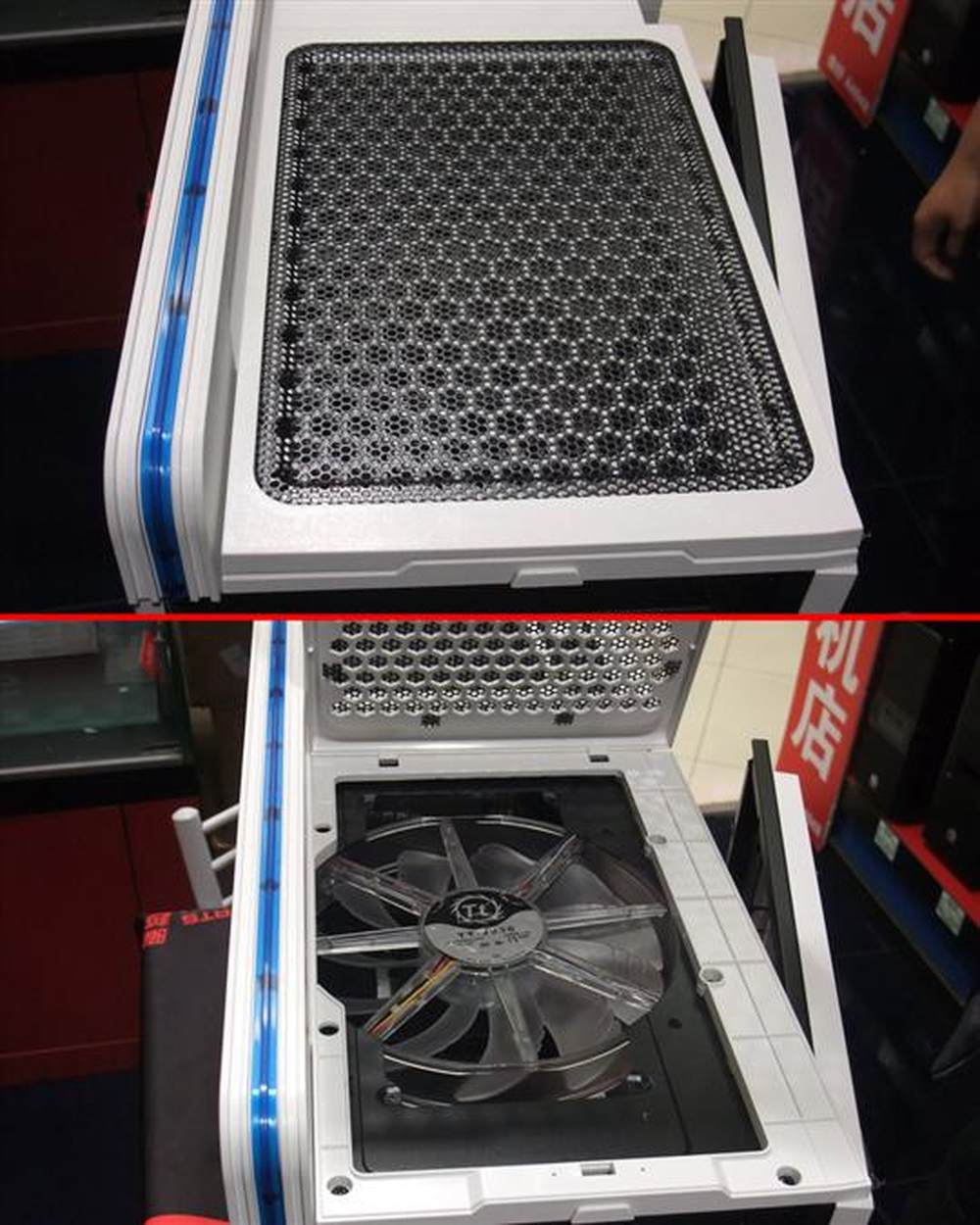 侧板上的进风口,用来给硬件散热的,你可以根据需要选择风流方向,很有意思。同样采用Colorshift技术20cm风扇。18/30
