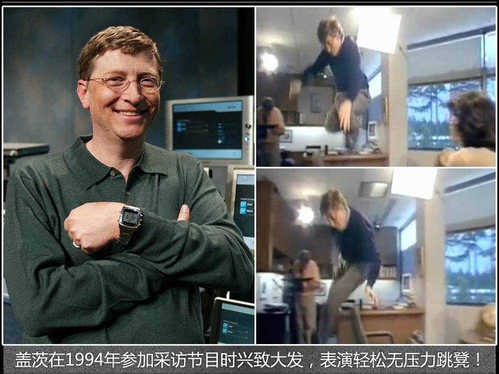1994年cbs主播宗毓华(Connie Chung)采访盖茨,在被问道“听说你站着能跳椅子?”(Leap over a chair in standing position)之后盖茨表示“那要看椅子多大”……然后就发生了这样一幕...5/15
