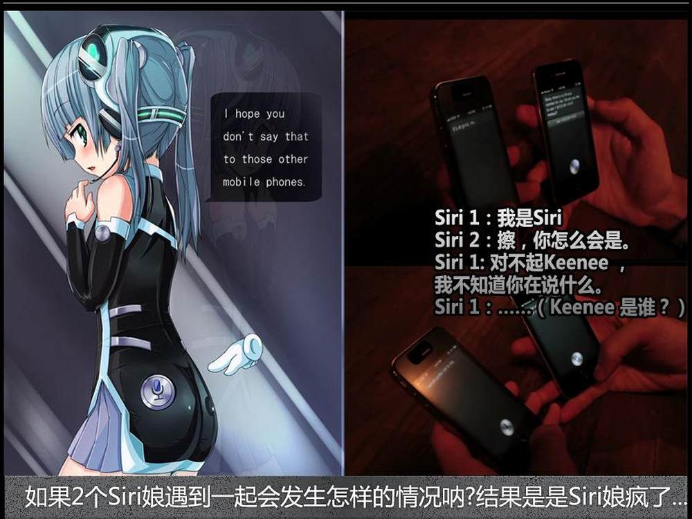 调戏Siri娘已经成了宅男最爱节目了吗?除了向它询问各种怪事之外,如果2个Siri遇到一起会发生怎样的情况呐?Gizmodo 的编辑找来了2部iPhone 4S,让两个Siri相互对话,结果是……结果是Siri疯了。