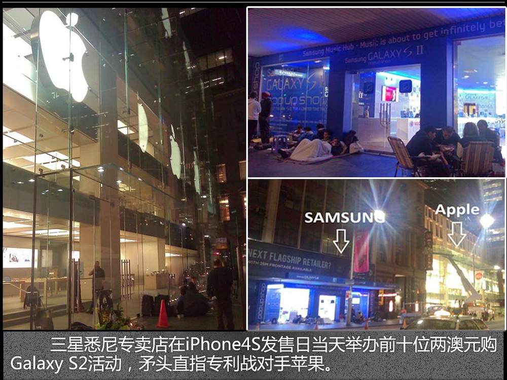 三星悉尼专卖店在iPhone4S发售日当天举办前十位两澳元购Galaxy S2活动,矛头直指专利战对手苹果。