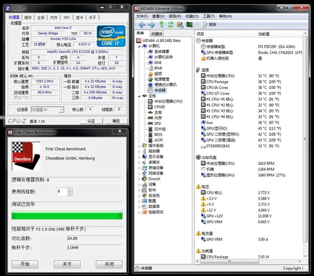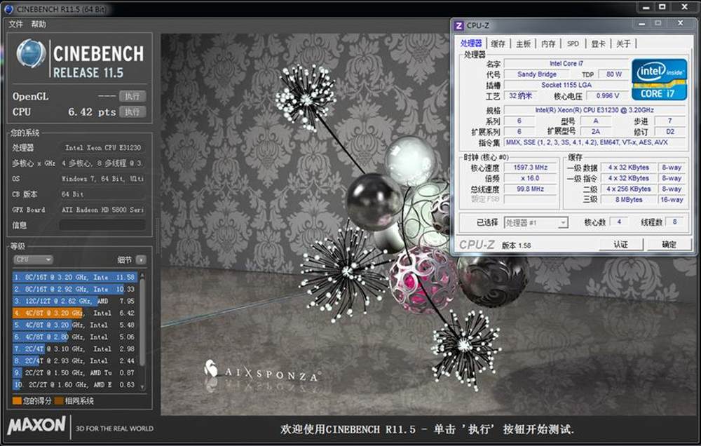 性能测试,不能超频的I7也很强悍,总算没白折腾。四核八线程在任务管理器里面看着也很爽,当初在i5-2500K和Xeon E3-1230之间摇摆了很久,价钱一样,一个不锁频随便超,一个L3还支持超线程,最终一波三折的选择了E3-1230,还是很满意的!