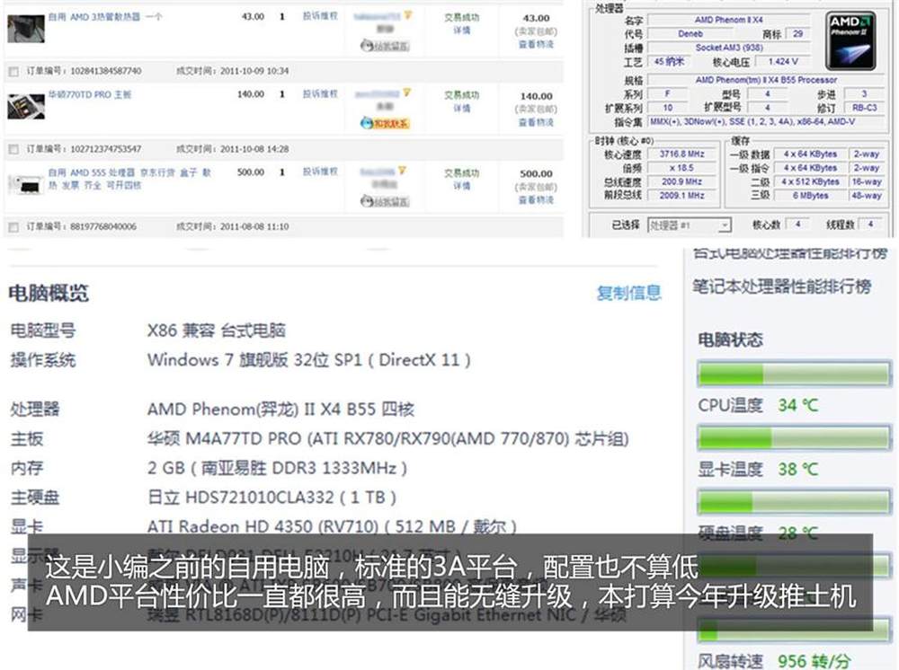 以上是老机器的硬件截图:AMD 555开四核、华硕的M4A770TD PRO、日立1TB硬盘、南亚易胜内存、显卡是戴尔品牌机上的4350(蓝宝5850平时玩游戏才上)升级换下来的配件已经被我低价转让了。3/29