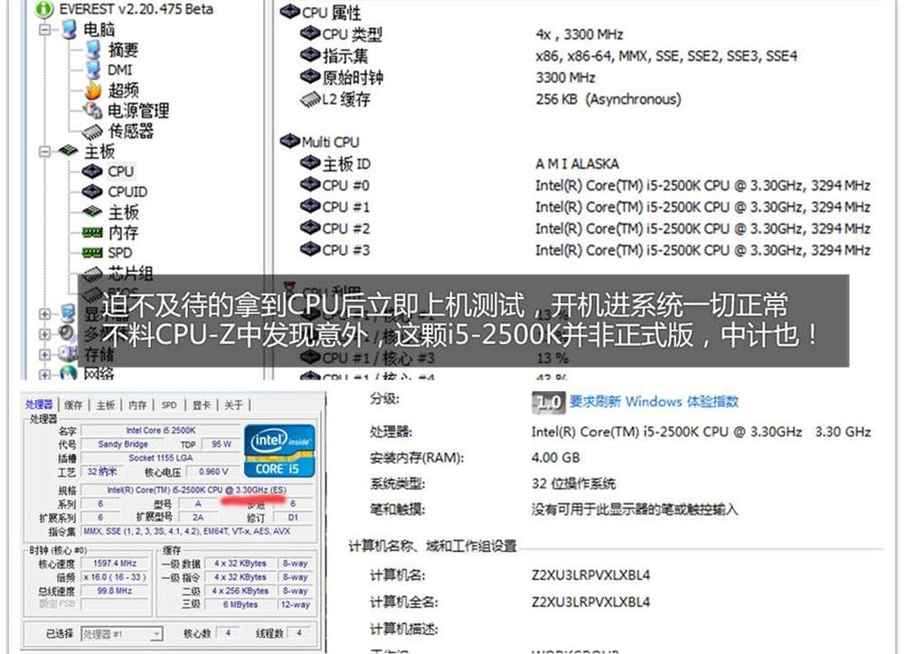 拿U的时候还特意看了下,CPU表面一切正常,进系统也显示正常,BIOS识别也正常。由于当时没有测试软件,没拿软件测试。心想卖家都说了是后包的,后包就后包吧,给钱走人!回到家后做超频测试的时候竟然发现了ES字样,这可把我雷的外焦里嫩。6/29