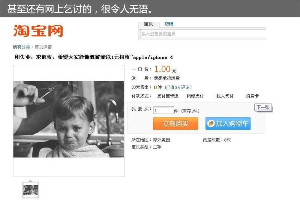泡泡网主板频道10月29日 网购已经成为人们消费的一个重要途径。调查显示,2010年我国网购消费金额为4980亿元,占到了全国社会商品零售总额的3.2%%,网购人数达到1.85亿,网上购物在网民中的渗透率为40.6%%。无论电子产品、服装、食品、演出票、充值卡,都可以通过网上购买。然而,大千世界无奇不有,网上你能买到的东西绝不止于此。豪华跑车、飞机、导弹、钻石这些东西网上也有卖的,虽然可能只是噱头,但是笔者也没有能力去验证其真伪。还有一类是主打创意,好的创意所带来的商品无论关注度和销量都很高。我们看看网上都有哪些稀奇古怪的东西能买吧!4/13