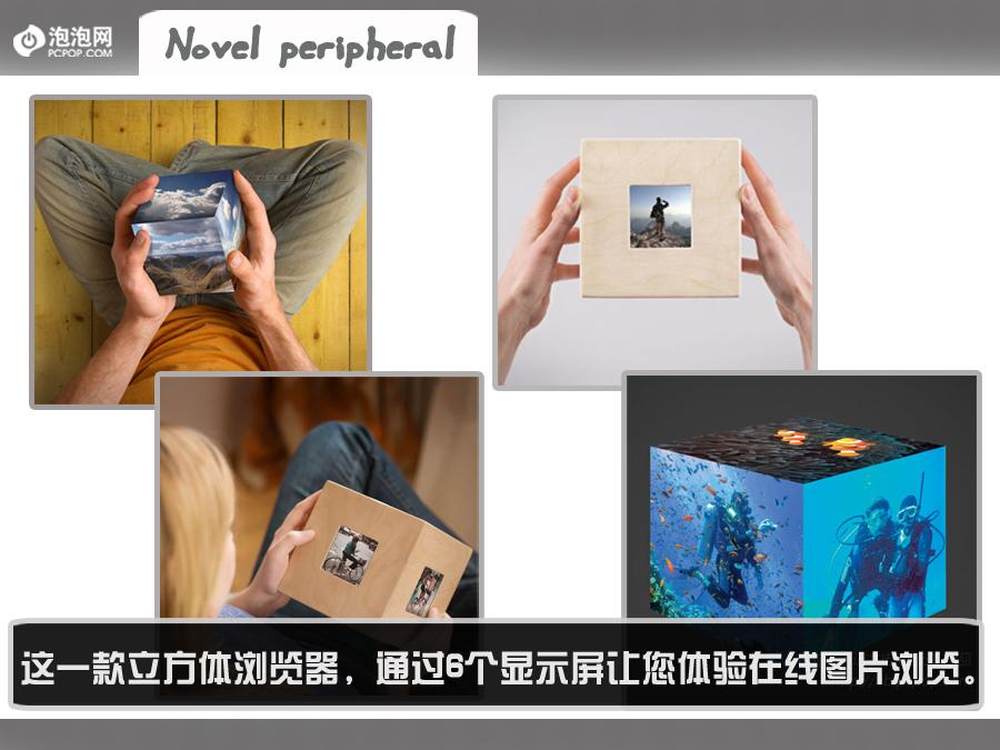 这款立方体浏览器通过6个显示屏,让您体验一种全新的在线图片浏览方式。现在,您无需端坐在电脑前面,通过鼠标点击或键盘输入,来切换、欣赏网络图片。您只要让这款立方体浏览器与网络连接,再设置好所要浏览的图片网站系数,即可通过摆动、翻转浏览器,来控制图片显示。用它来浏览图片分享网站,想必可以让您体会到摄影作品的另一种迷人魅力。