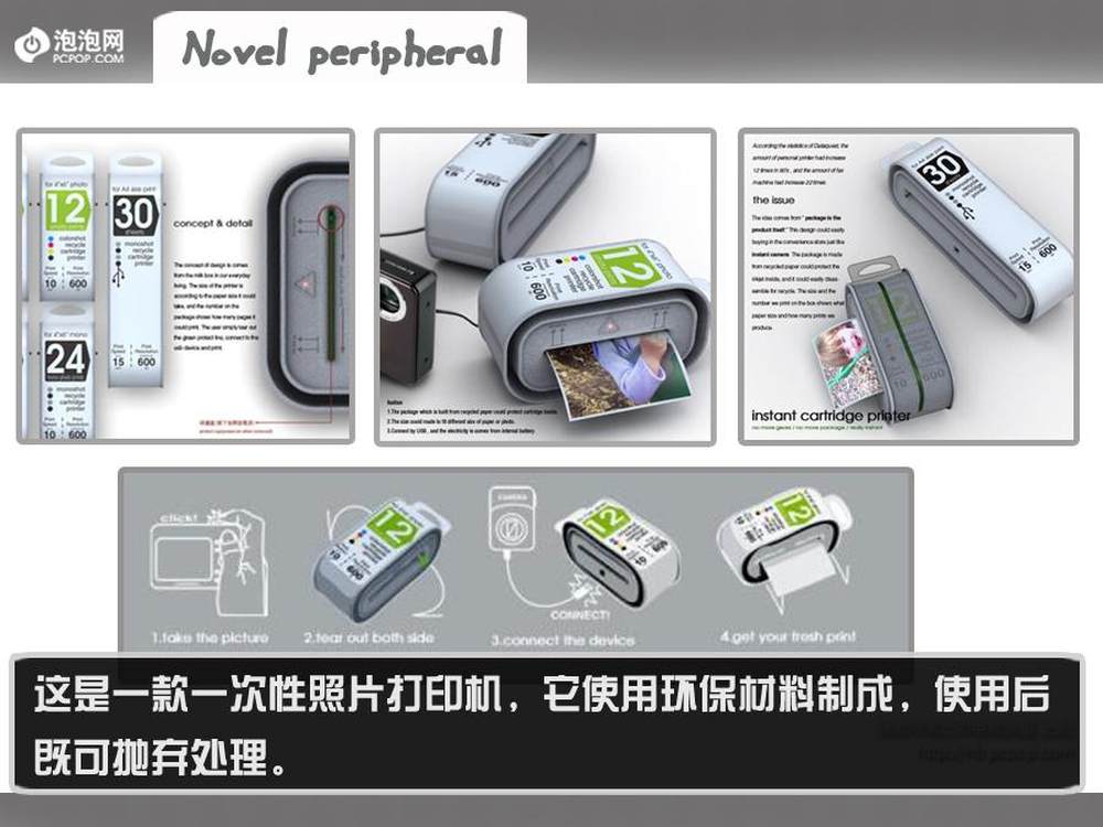 这款简洁小巧的照片打印机类似一次性相机,它使用环保材料制成,使用后既可抛弃处理。使用时,撕开两端的封条内置的电池就会启用,然后您只需将数码相机与这款打印机用USB线连接就可以开始打印照片了。虽然目前这款产品仍处于概念阶段,但是其简捷方便的特性肯定会受到不少爱拍照人士的喜爱。7/11