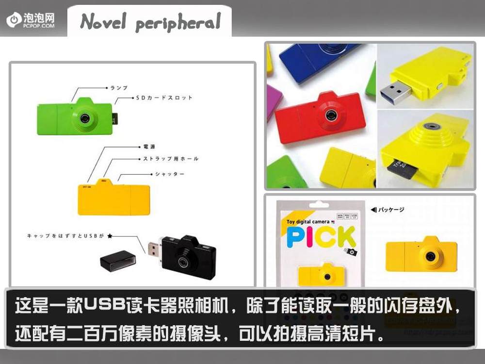这款色彩艳丽的USB读卡器功能十分强大,除了能读取一般的闪存盘外,还配有二百万像素的摄像头,可以拍摄高清短片。它只有普通钥匙扣大小,仅重24克,携带起来非常方便。对于那些喜爱随时随地拍摄的朋友来说,这款产品或许是个不错的选择。8/11