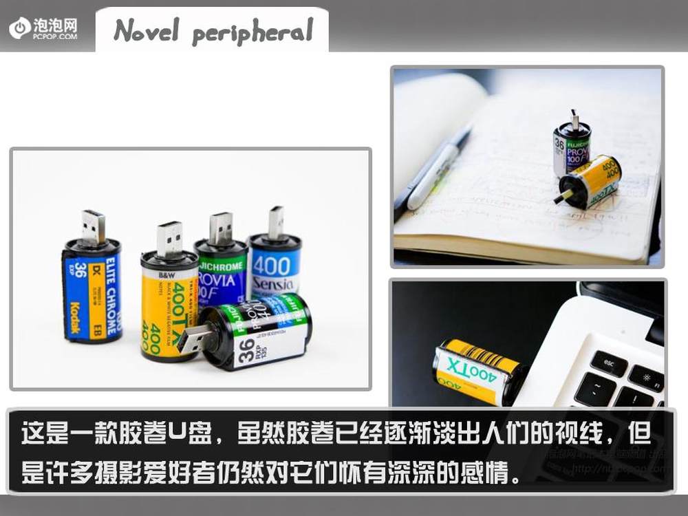 虽然胶卷已经逐渐淡出人们的视线,但是许多摄影爱好者仍然对它们怀有深深的感情。这款U盘便采用了胶卷的造型,显得十分与众不同,如果用它来保存您的照片,下次一定可以让您马上就从众多的存储设备中找出来。