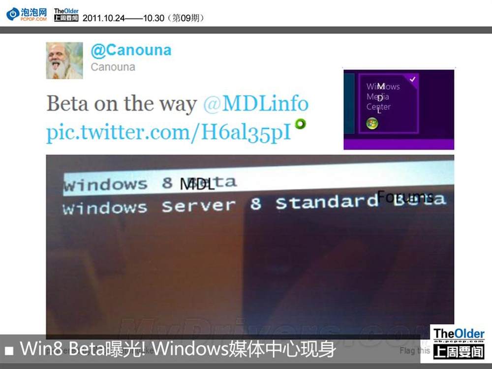 Windows 8 Beta近日遭网友Canouna曝光并获得,同时该网友还透露Windows 8 Beta版本号为Build 8141.0.winmain.111021,且包含Windows Media Center媒体中心。网游canouna表示,Windows 8 Beta中存在不少的改进,例如Metro应用程序可实现缩放,同时用户还可更改Metro背景色,等等。此外,微软此前并未提及的Windows Media Center,截图中也终于出现了踪迹。6/16