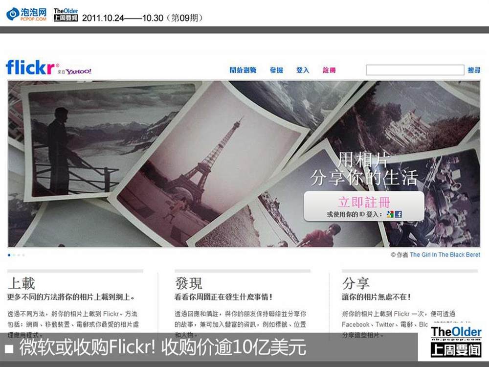 微软目前正与银湖及其投资方加拿大退休金计划投资局,计划联合向雅虎提交一份收购计划。对此业内人士分析表示,若此次收购成功,微软将成为全球最大图片分享网站Flickr的拥有者。13/16