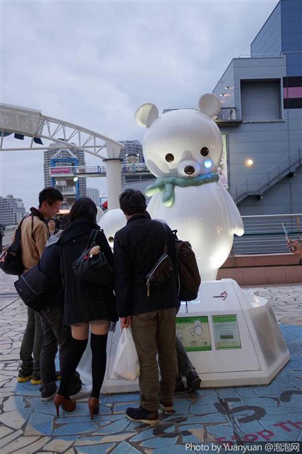 傍晚,东京台场海滨公园,一个小熊造型的东东不停吸引着路人的围观,其中不乏美女。然而最终我也没搞明白这玩意儿是干嘛的。6/54