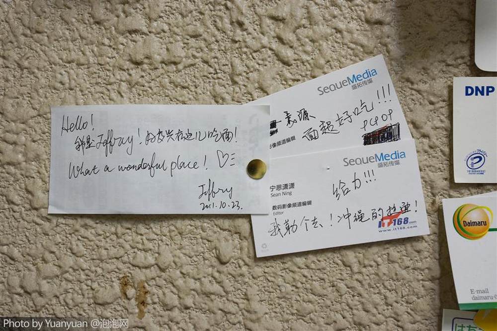 这家面店最大的特色是墙上贴满的纸条和名片,大都是到这里吃面的游客留下的。另外这家面店吃面还是机器自动点餐,类似自动售饮料的机器。52/54