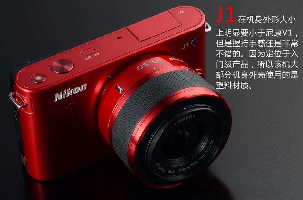 J1在机身外形大小上明显要小于尼康V1,但是握持手感还是非常不错的。因为定位于入门级产品,所以该机大部分机身外壳使用的是塑料材质。3/12