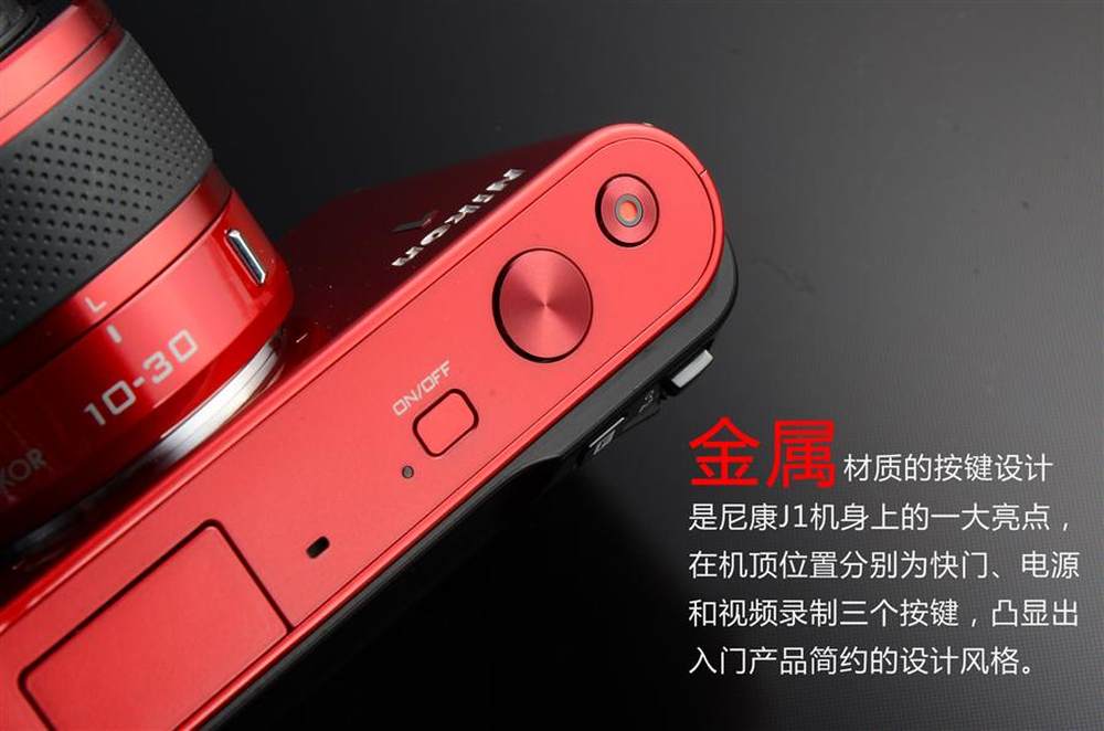 金属材质的按键设计是尼康J1机身上的一大亮点,在机顶位置分别为快门、电源和视频录制三个按键,凸显出入门产品简约的设计风格。4/12