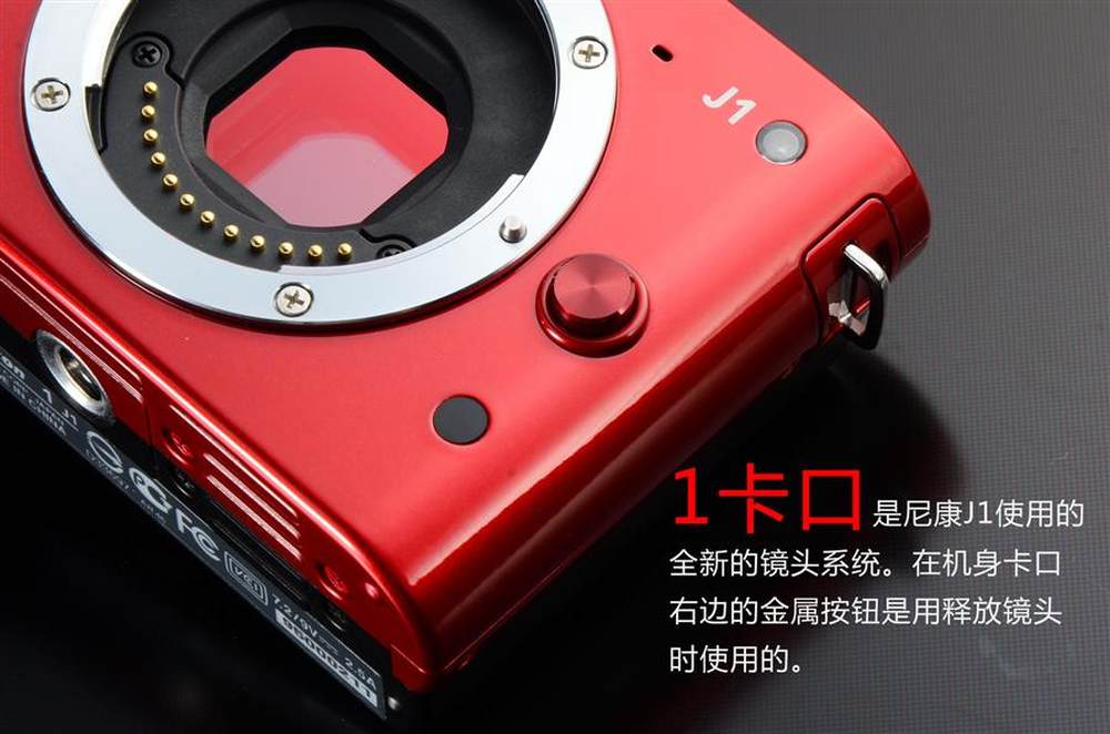 1卡口是尼康J1使用的全新的镜头系统。在机身卡口右边的金属按钮是用释放镜头时使用的。8/12