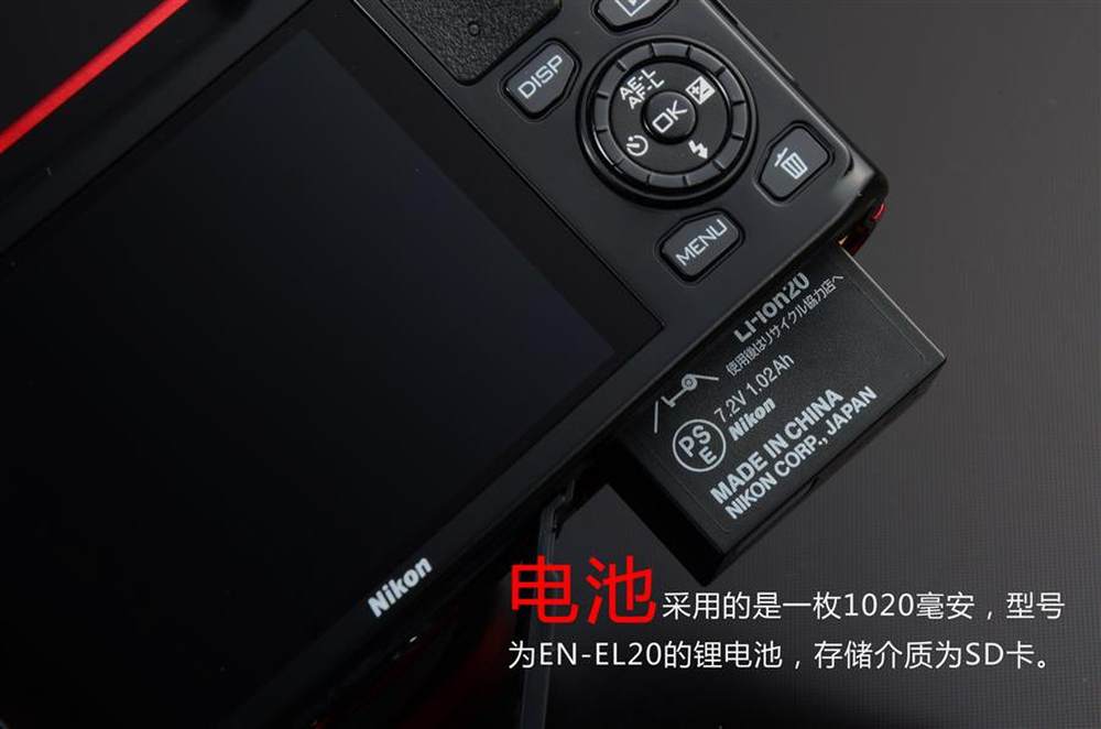 电池采用的是一枚1020毫安,型号为EN-EL20的锂电池,存储介质为SD卡。10/12