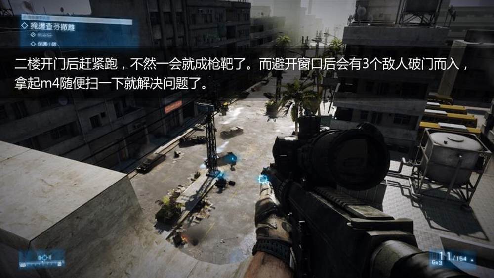 保护小队护送刚挂彩的哥们,分别有3批敌人,不过我觉得这里NPC比我给力多了。。。17/25