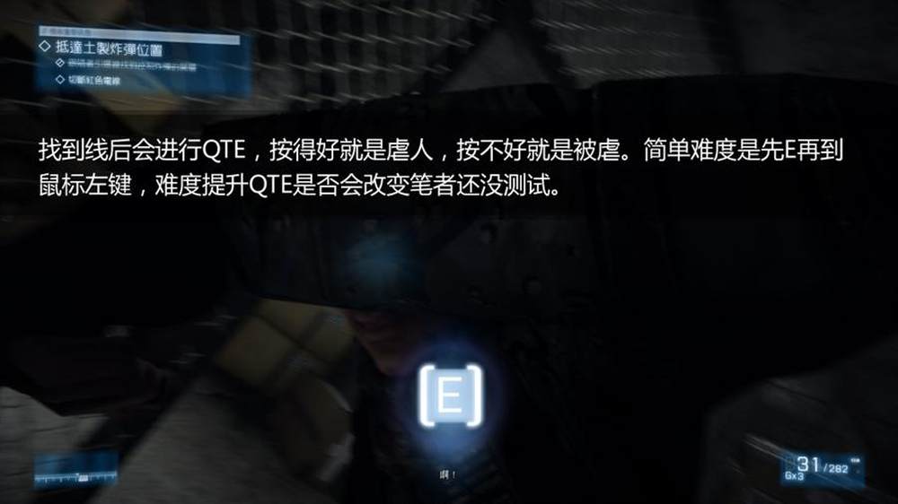 找到线后会进行QTE,按得好就是虐人,按不好就是被虐。简单难度是先E再到鼠标左键,难度提升QTE是否会改变笔者还没测试。23/25