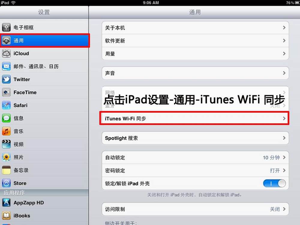 iPad通用设置中找到iTunes设置选项,点击进入。5/9