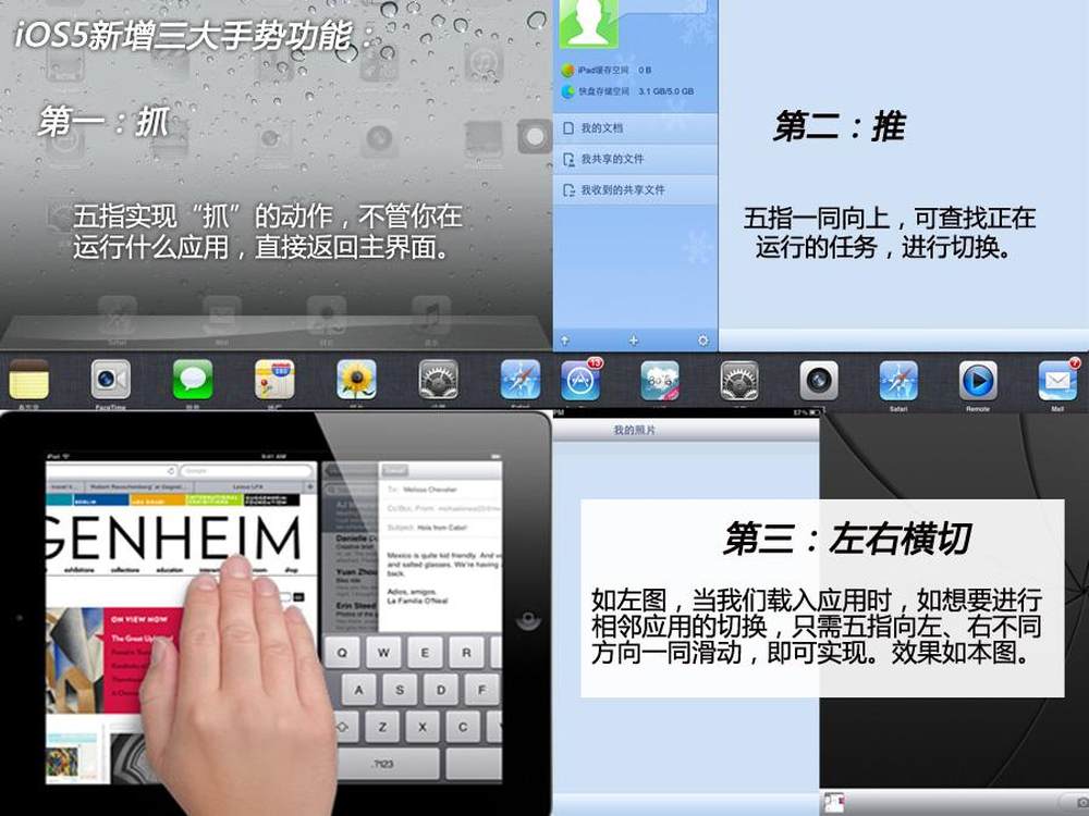 多任务手势功能共分三种:抓、推、左右横切。3/10