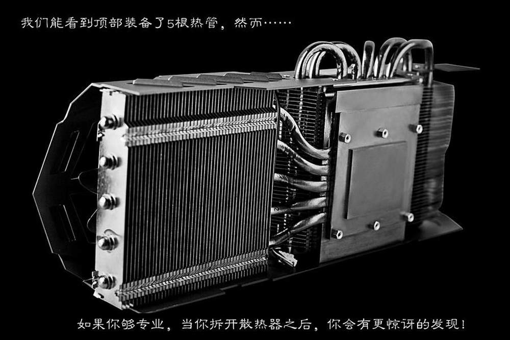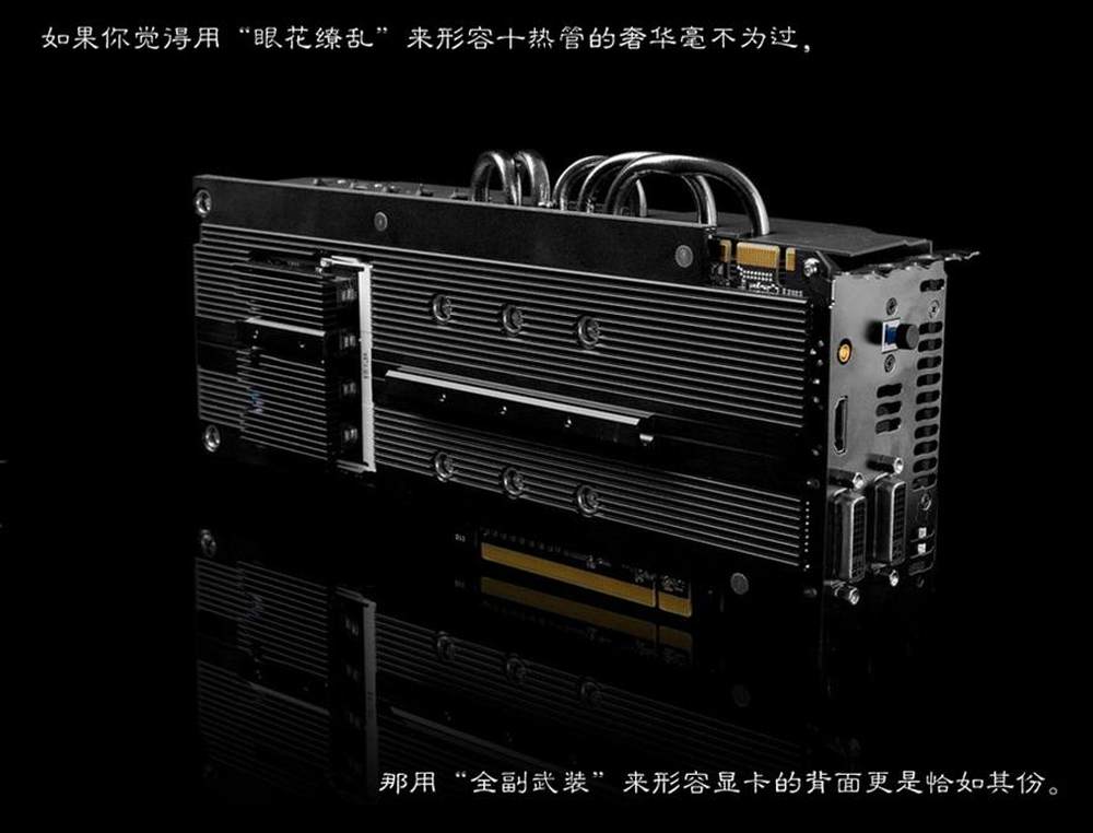 如果你觉得用“眼花缭乱”不足以用来形容10根热管,那用“全副武装”来形容显卡的背面一点也不为过。