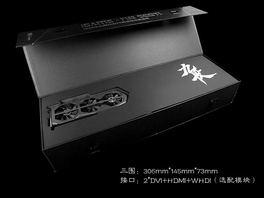 iGame系列往往能够给我们带来眼前一亮的惊喜,这款顶级显卡自然也搭配了独特的包装。七彩虹一改过去常用的包装形式,加入了新的创意,将常见的横卧的包装改为立式的包装,辅以“黑带”作为装饰,外观设计简洁中透着霸气。而它的革命性的包装尺寸达到史无前例的820mm(高)X165mm(长)X140mm(宽)。