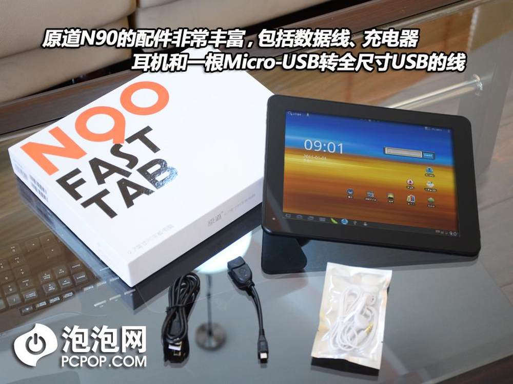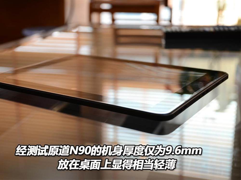 原道N90采用IPS全视角面板,屏幕分辨率1024×768,9.6mm超薄的机身厚度,630g超轻机身设计、1GHz主频1GB运行内存16GB大容量存储、电容十点触控、前后双摄像头、8000毫安时电池和全新的SDK2.0优化技术。现在目前这款平板电脑已经抵达泡泡网,让我们来看看N90卖的是什么样子吧!7/8