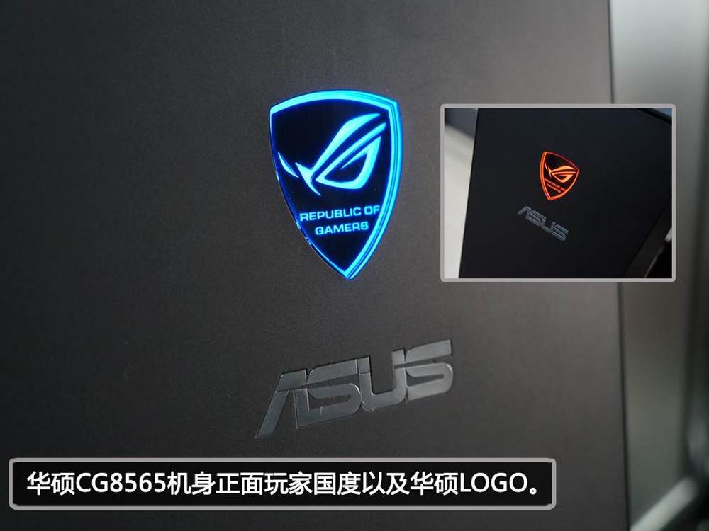 机身正面的玩家国度以及华硕LOGO。10/34