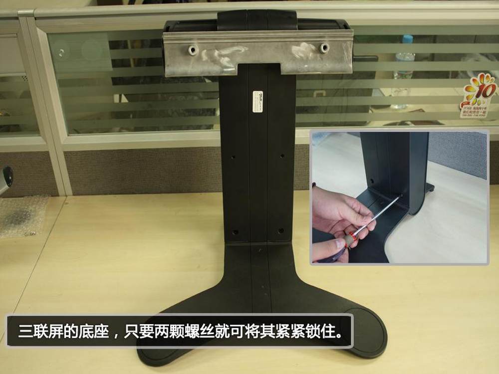 三联屏的底座很好安装,只有把两颗螺丝拧紧即可。27/34