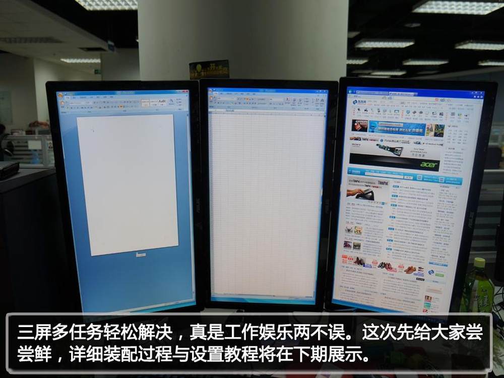 三块27吋屏幕连接在一块很霸气。29/34