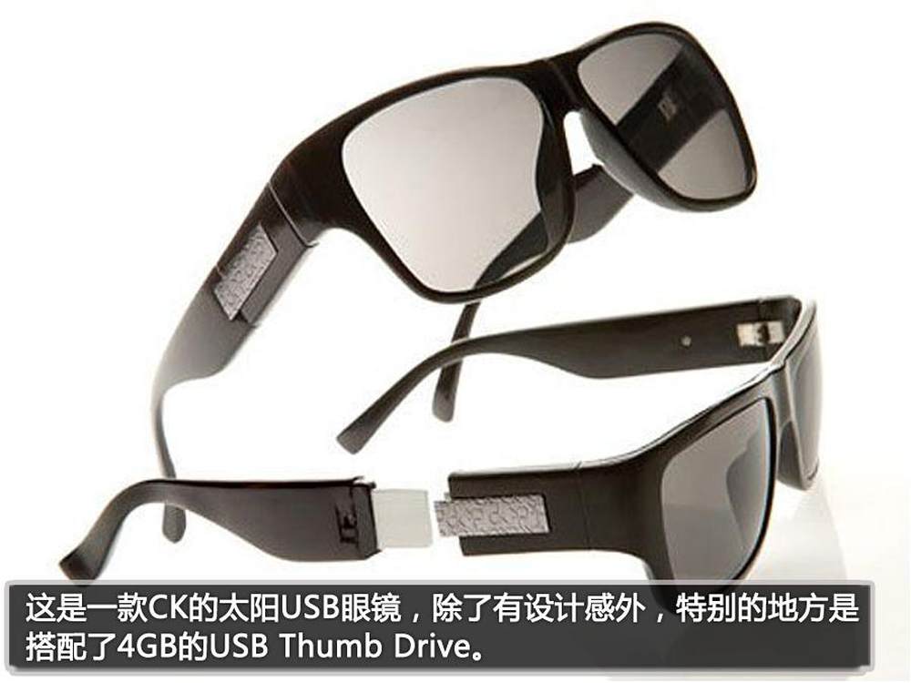 这支Calvin Kelin大阳眼镜,除了有设计感外,特别的地方是搭配了4GB的USB Thumb Drive。你可以把眼镜框的右边拔出来,然后插进电脑,这很有设计感吧!(如果不是外型美,我想跟山寨差不多!)售价USD$200,约RMB1,366。