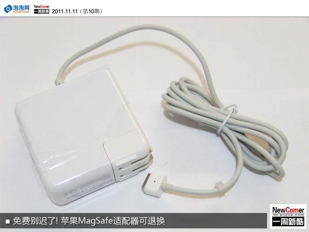 据国外媒体报道,近日苹果推出一个MagSafe适配器更换项目,超过保修期、遭受磨损的MagSafe适配器均可拿回苹果公司进行免费退换。据悉,苹果该决定来自一项关于MagSafe电源适配器诉讼的判决结果,苹果除了给磨损的60W或85W MagSafe MPM-1(“T”)电源适配器用户更换新的适配器外,对于那些已购买了新适配器的用户也提供了相应的退款。(详情请看:http://www.pcpop.com/doc/0/730/730554.shtml)7/9