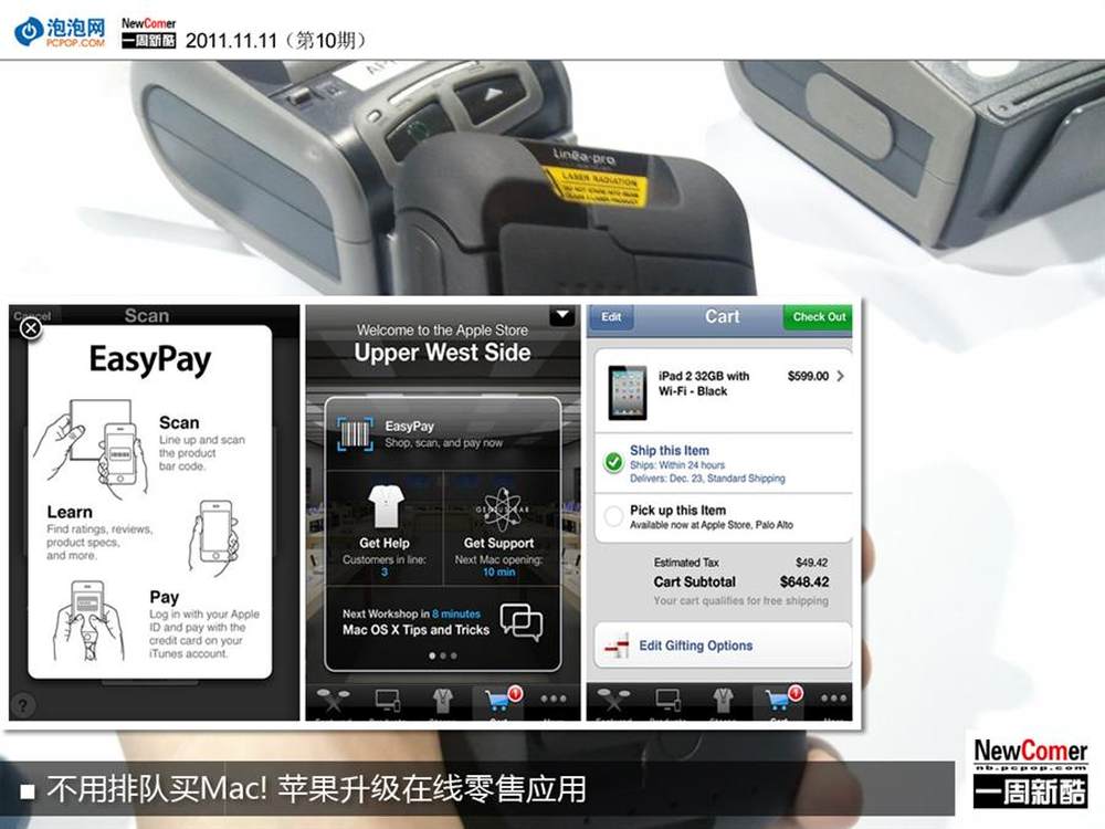 目前苹果升级了在线商店及零售应用,用户可凭借自己的iOS设备为Mac电脑、iPad以及iPhone等高价设备支付费用,零售店员工直接从库房取货即可。业内人士评论表示,此举无疑减轻了Apple Store中的人流压力,同时也降低了用户购买时所耗费的时间成本。(详情请看:http://www.pcpop.com/doc/0/730/730361.shtml)9/9