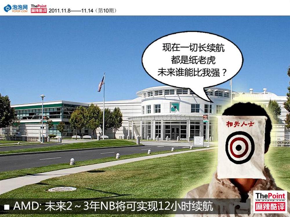 近日AMD公司CTO查克·摩尔接受采访时再次提及AMD的新节能承诺:未来将令笔记本续航时间延长50%%,节能前提下使性能提升30%%。同时,他还提到在未来2~3年里,Bulldozer将可以让笔记本续航时间延长到12小时。(详情请看:http://www.pcpop.com/doc/0/729/729978.shtml)7/9