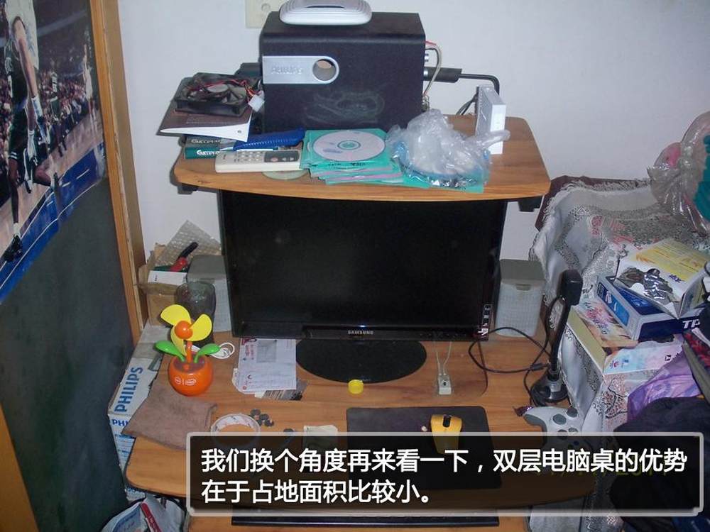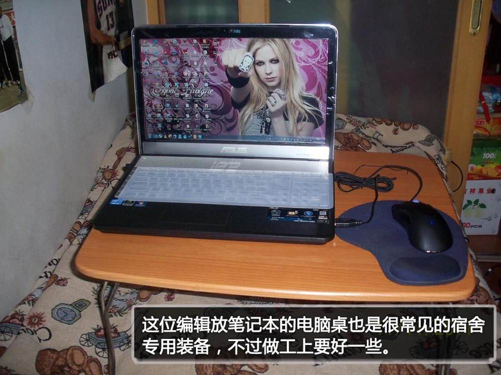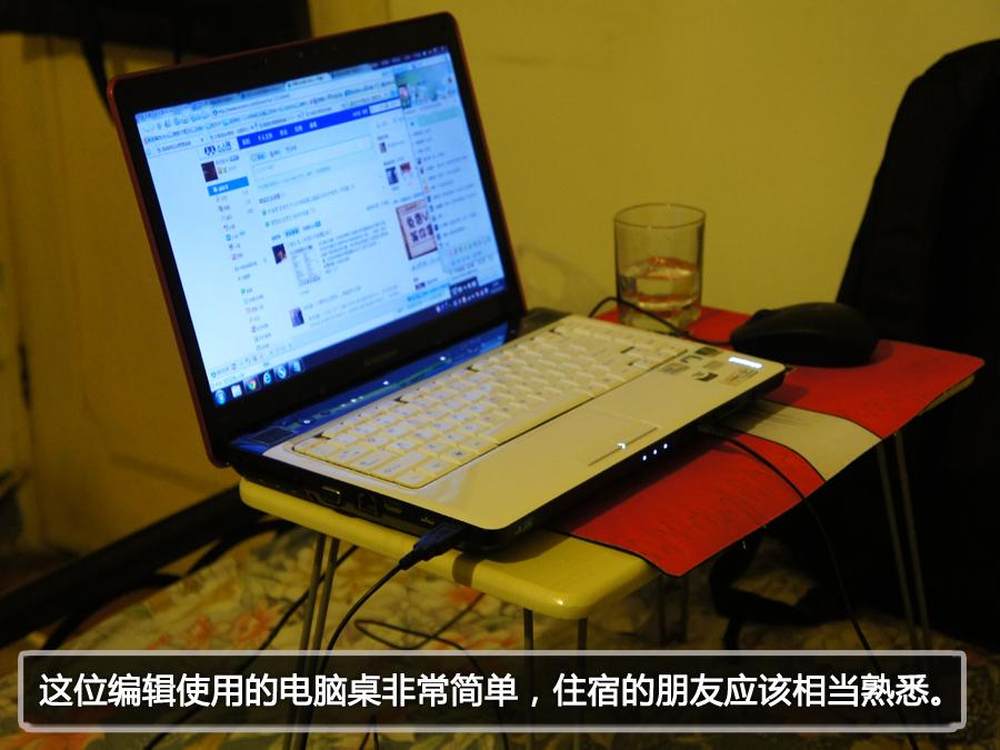 这款电脑桌相信住宿的朋友都用过,不过这位编辑由于长期在单位驻扎,所以桌子的面积明显不足,真担心他得水杯会掉床上啊。4/18