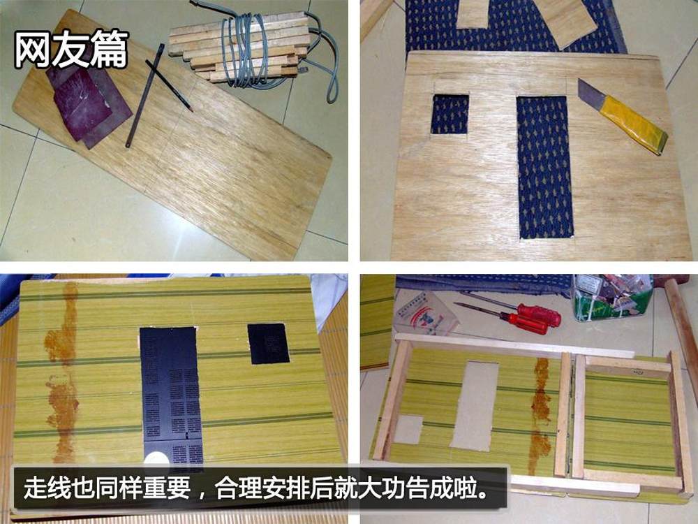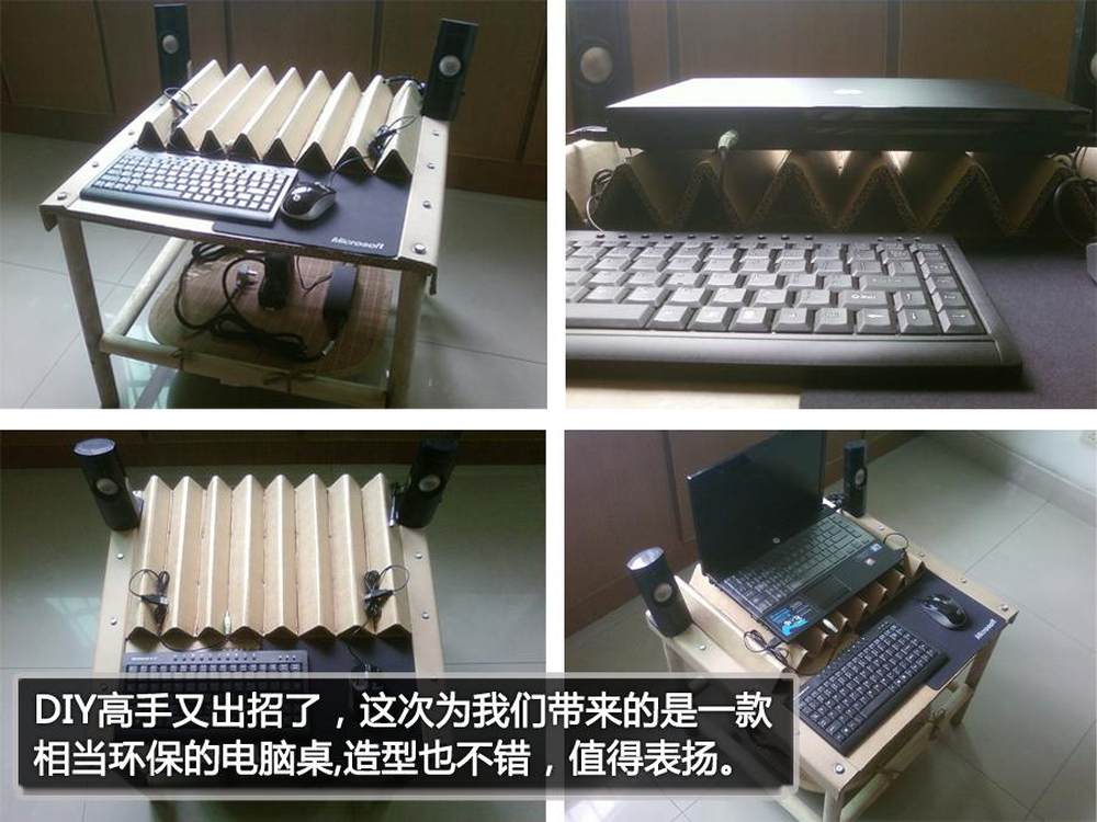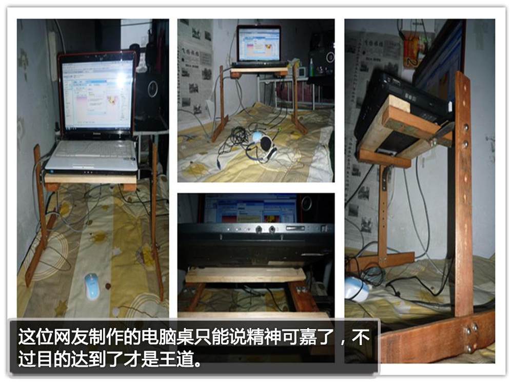 说了那么多编辑的,下面我们来看看网友DIY的设计作品,虽然这款电脑桌的制作过程看上去很山寨,但精神可嘉啊。12/18