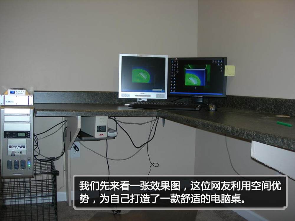 先给大家来张效果图,这个电脑桌的制作者一定是高手,充分利用了自家的空间啊。16/18
